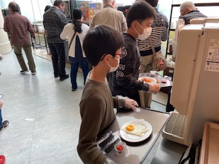自分が食べたいものを取り、朝からもりもり食べていました。